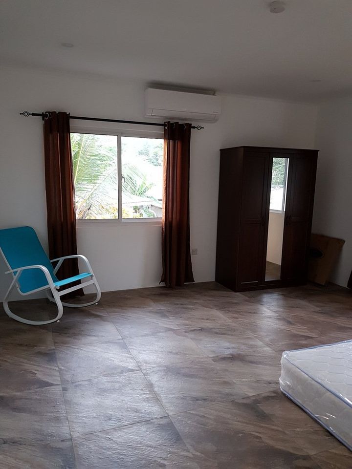 Two-bedroom apartment on the first floor with kitchen, living room, bathroom, and balcony. Fully furnished and equipped incl. AC, TV, washing machine, hot water heater, appliances, utensils, CCTV, parking space and a nice garden. Apartment in prime location in Anse La Mouche (walk 1 min to the beach, never miss a sunset again!) Monthly rent 20,000 SR (including internet). Plus 1-month deposit required. No pets. Contact: 2582161 or 2580423.